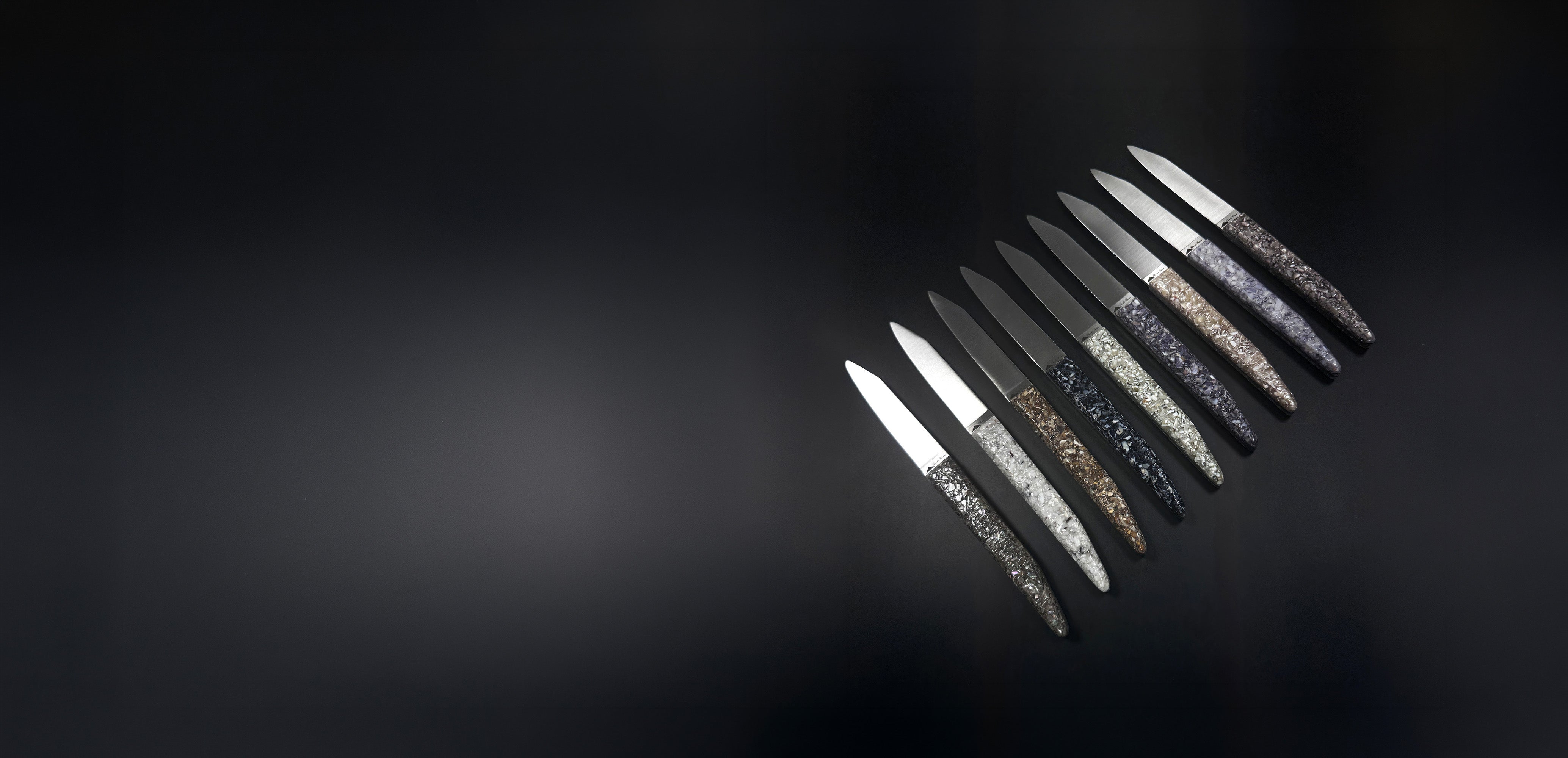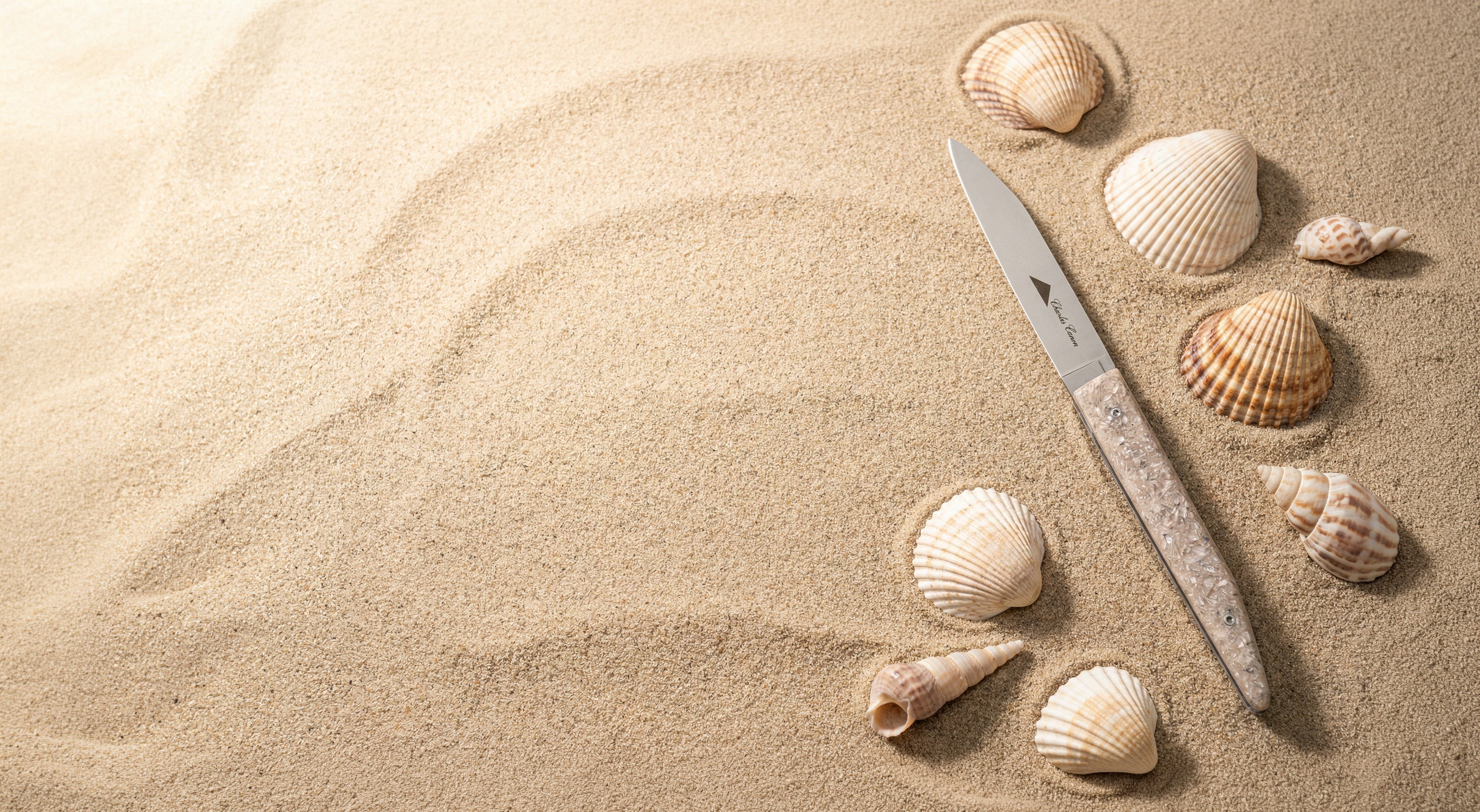 Chaque manche de notre collection de la mer puise sa beauté dans les éléments naturels des côtes. Coquillages, huîtres ou encore moules sont soigneusement sélectionnés pour leur texture et leur couleur, puis transformés par notre savoir-faire artisanal en couteaux et accessoires uniques.